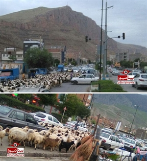 عبور گله گوسفندان از وسط بلوار رسالت، قره کورپی