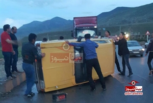 یک دستگاه تاکسی پیکان در مقابل وادی رحمت به دلایل نامعلومی واژگون شد