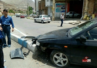 اخبار ماکو ::-> برخورد سمند با جدول وسط خیابان شهریار