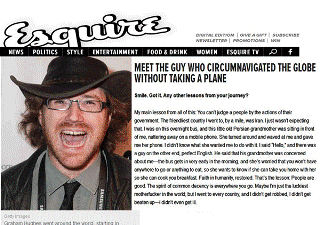 نخستین مُهر گذرنامه گراهام در اول ژانویه 2009 در کشور اروگوئه ثبت شده و آخرین آن به عنوان پایان سفرش به همه کشورهای دنیا در جزیره "سیشلز" در اقیانوس هند ثبت شده است. پاسپورت هاگز به دلیل پر شدن مهرهای ورود و خروج به کشورها در 4 سال گذشته، 4 بار تعویض شده است. نام او در کتاب رکوردهای گینس به عنوان فردی که به تمامی کشورهای جهان بدون استفاده از هواپیما سفر کرده، ثبت شده است. وی اخیرا ویدئویی 201 ثانیه ای از 201 کشوری که به آن سفر کرده است روی شبکه یوتیوب قرار داده است. گراهام اخیرا در مصاحبه با شبکه " Esquire" درباره سفر به ایران خاطره ای جالب تعریف کرده است.